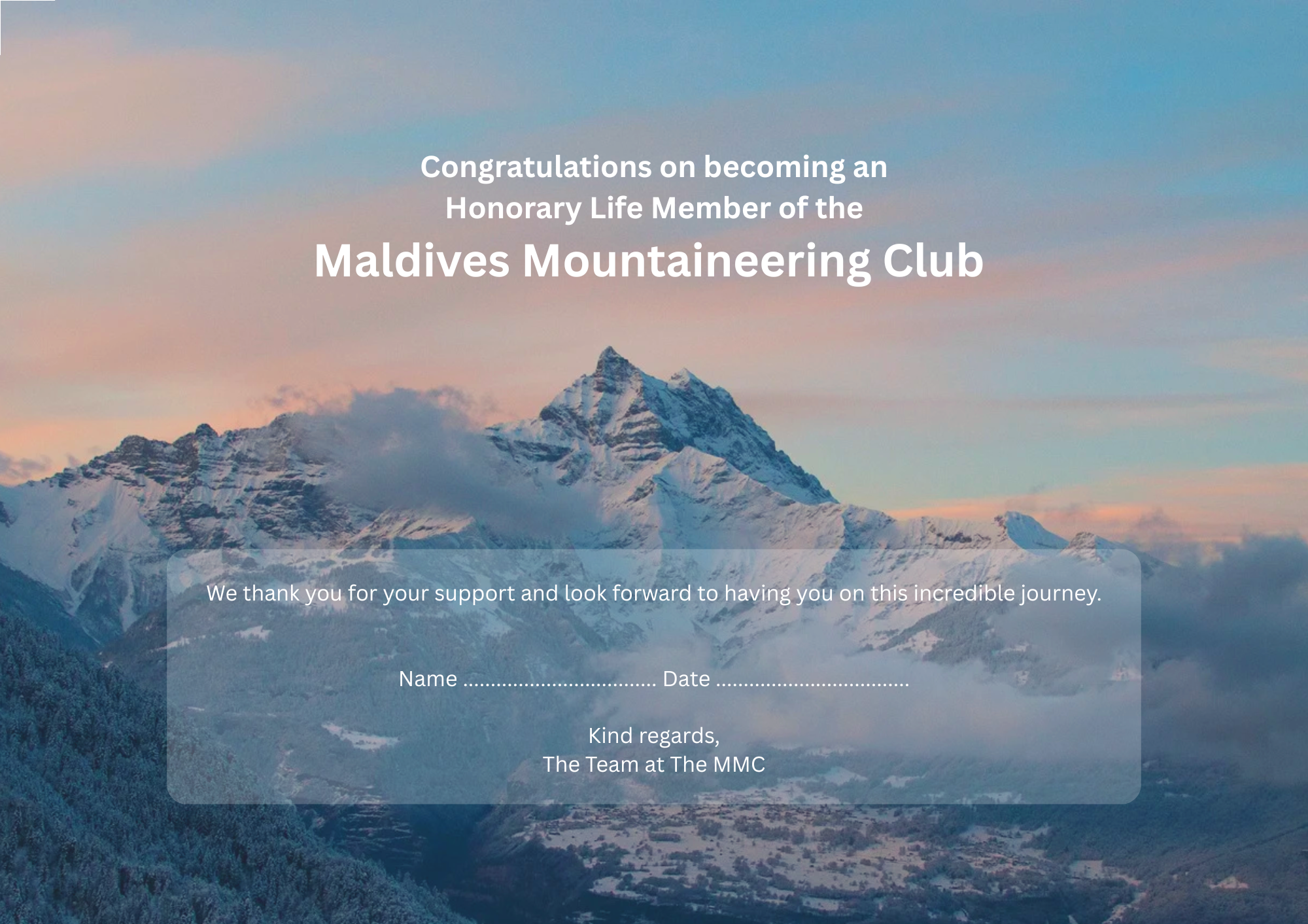 Thank you to all our new Maldives Mountaineering Club members.